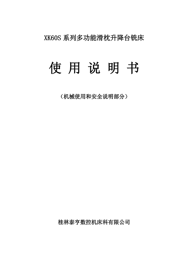 Xk60S-XK50S數控滑(huá)枕銑床使(shǐ)用說明書